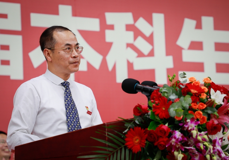 校长吴承祯在致辞中首先代表学校向2022届毕业生表示最诚挚的祝贺,向四年来付出了辛勤劳动的一线教职员工表示崇高的敬意,向家长朋友致以最诚挚的问候。他指出,同学们是经历极不平凡四年的一届毕业生,是见证学校高质量发展的一届毕业生,是自信自强、刚健有为的一届毕业生;也是国家实现第一个百年奋斗目标的经历者、见证者,更是国家实现第二个百年奋斗目标、建设社会主义现代强国的生力军。大家要牢记习近平总书记的殷切期盼和张彦部长的亲切关怀,自强不息、勇毅前行,把青春播撒在民族复兴的征程上,把光荣镌刻在历史行进的史册里。