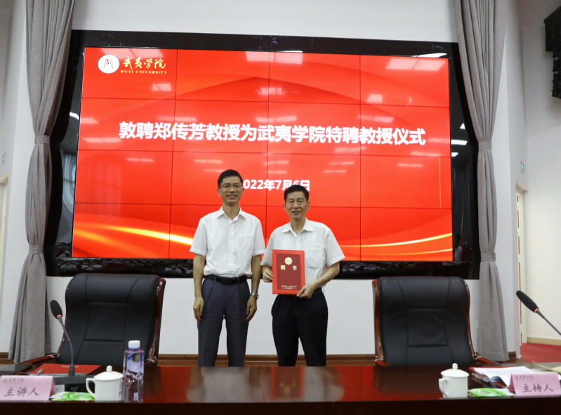 报告会之前,举行了敦聘郑传芳教授为武夷学院特聘教授仪式,校党委副书记、校长吴承祯向郑传芳教授颁发聘书。