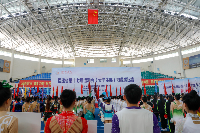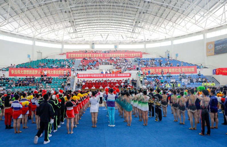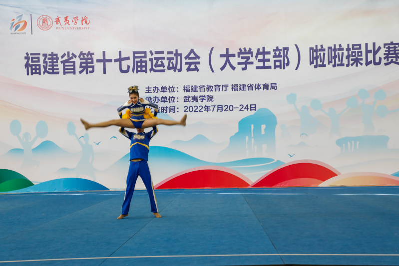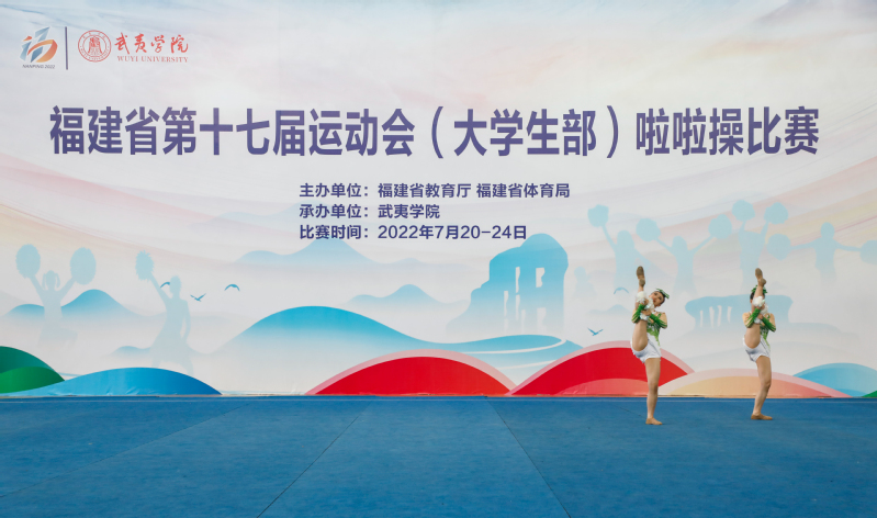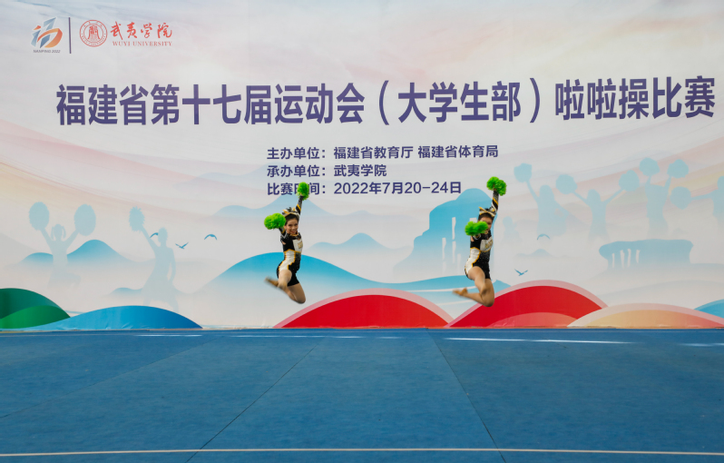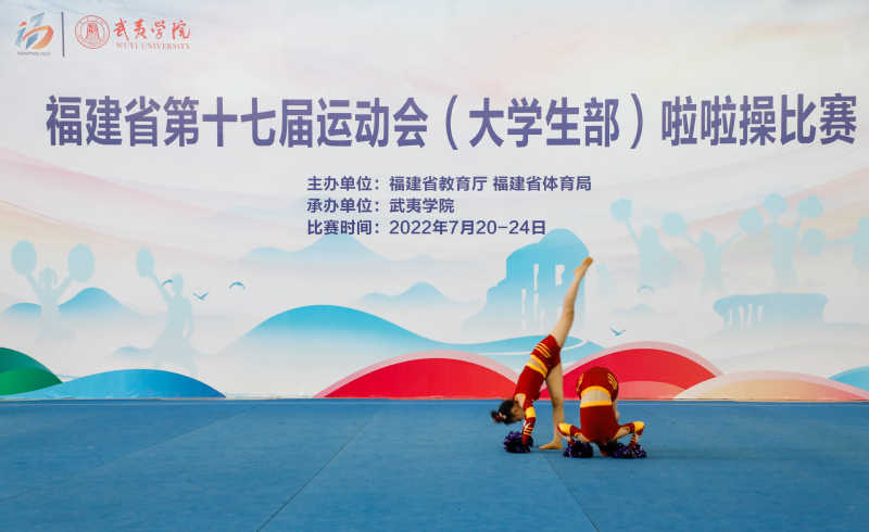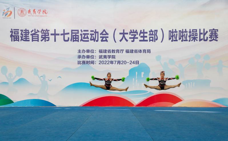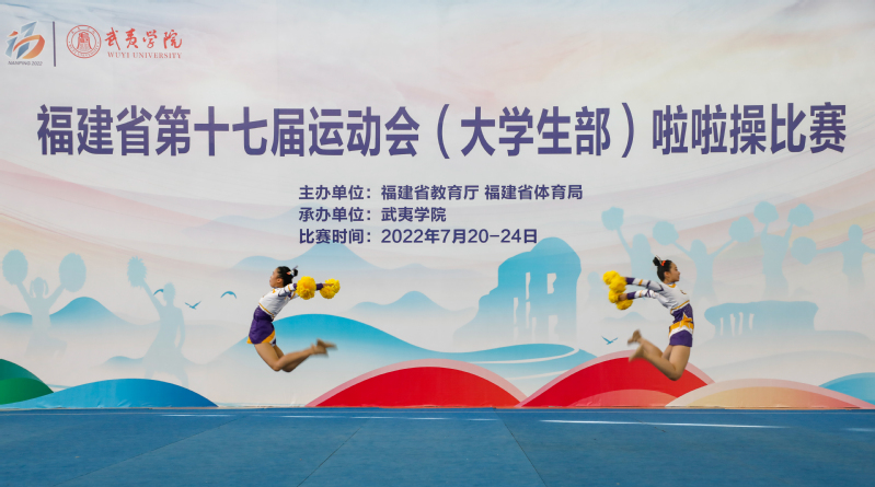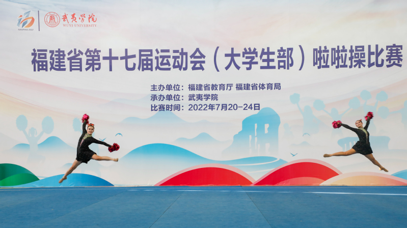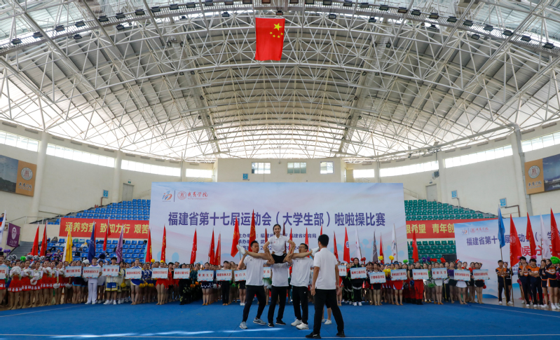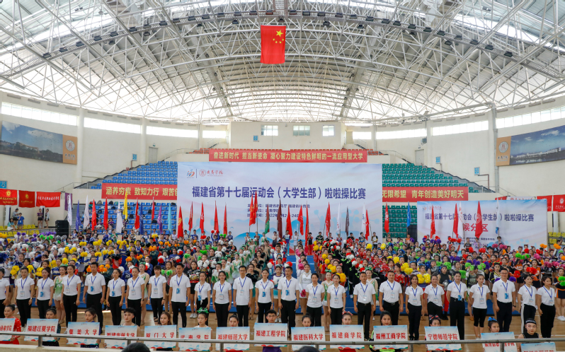 7月21日下午,福建省第十七届运动会(大学生部)啦啦操比赛在我校体育馆隆重开幕。福建省教育厅体卫艺语处处长苏贻堆,武夷学院党委委员、副校长张大烛,福建省大学生体育协会啦啦操分会会长、福建师范大学体育科学学院副院长、中国女排奥运冠军徐云丽,南平市教育局副局长吴礼清,南平市体育局三级调研员李力,福建省第十届省运会(大学生部)啦啦操比赛总裁判长、福建师范大学体育科学学院教授方熙嫦出席开幕式。全省高校参加啦啦操比赛的代表队领队、运动员参加开幕式。