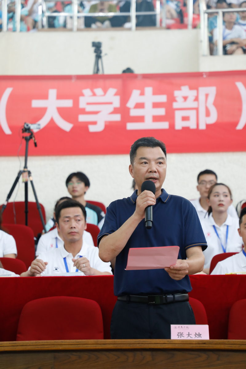张大烛在致辞中向莅校观摩指导本次比赛的各位领导来宾以及全体运动员、教练员表示热烈的欢迎,向参与赛事组织工作的全体裁判员、工作人员致以诚挚的问候,向关心支持武夷学院建设发展的各兄弟学校表示衷心的感谢。他表示,此次省运会大学生部比赛,是践行习近平总书记关于推动体育事业发展重要讲话重要指示精神,推动我省高校体育改革发展,促进学生身心健康、全面发展的生动实践,不仅为推动全民健身运动发挥示范引领作用,也为我省各高校促进交流、增进友谊、深化合作搭建了重要平台,必将有力推动全省高校体育事业的蓬勃发展。特别是定向越野、气排球、跳绳和啦啦操等比赛项目相继在武夷学院举办,是主办单位和兄弟高校对武夷学院的信任和鼓励,对推动学校体育事业发展,更好地培养德智体美劳全面发展的社会主义建设者和接班人,具有十分重要的意义。相信在省教育厅、大学生体协和大赛组委会的精心组织下,在全体参赛运动健儿的协作拼搏下,本届比赛一定能够办成一个团结、进取、精彩、圆满的体育盛会。