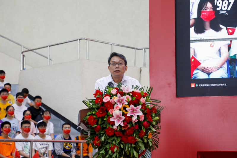 校党委书记庄祥生首先代表全校师生员工对同学们的到来表示最热烈的欢迎,对同学们的信任表示最衷心的感谢,对因疫情原因暂缓来校的新同学表示最诚挚的问候,期盼他们能早日平安顺利到校,向陪伴他们一路成长的亲友与师长们致以最崇高的敬意。庄祥生指出,开学典礼是学校薪火相传的标志,借此机会与全体新同学一起探讨三个问题:一是作为新时代的大学生,同学们要用心理解大学之道。大学是文明的殿堂,以文明的方式传达文明的理念、文明的知识,培育文明的人。我们是中国共产党领导的社会主义大学,社会主义大学是什么?习近平总书记给出了明确的答案,是立德树人、培养人才的地方,是青年人学习知识、增长才干、放飞梦想的地方。我们的任务就是要“培养担当民族复兴大任的时代新人”“培养德智体美劳全面发展的社会主义建设者和接班人”。二是作为新时代的武院人,同学们要用心感悟武院内涵。武夷学院是朱子创办武夷精舍的传承者,创办于1958年这个新中国百业待兴、万众奋发的创业年代,64年来,学校始终坚持艰苦创业、奋发有为,旧貌换新颜;始终坚持深化改革、守正创新,今朝胜往昔;始终坚持立德树人、传道授业,桃李满天下。在武夷学院里,可以领略各领域最优秀学者老师的言传身教,选择启迪心智的课程、聆听深邃前沿的讲座、投身洞察社会的实践、倾情探索未知的研究、参与拓展视野的国际交流、沉浸于丰富多彩的校园文化生活。所有这些都将是同学们成长的养分和创造力的源泉。三是作为新时代的接班人,同学们要用心把准人生航向。校训既是一个学校办学理念、治校精神的反映,也是一所学校教风、学风、校风的集中表现。学校以朱子的“涵养穷索,致知力行”之精神为校训。“涵养”即修身养性,懂道理、明事理、知进退。“穷索”即苦心思索,反复探究。“致知力行”即致力于获取知识并努力付诸实践。同学们要“涵养”家国情怀,自觉把个人理想同祖国的前途和民族的命运紧密联系在一起,立大志、明大德、成大才、担大任,与时代同行,与祖国同步,坚定理想信念;要锻造“穷索”本领,敢于质疑、善于思考,敢为人先、善于突破,不断提升自己的思辨力、学习力、创造力,成就真学问、练就真本领,不断追求卓越;要增强“致知”定力,建构广博精深的知识体系,深入探究科学之真、工程之道、人文之善、艺术之美,为成长为堪当民族复兴大任的时代新人夯实能力之基;要保持“力行”韧劲,在学习求索的攀登之路上不断创造新纪录,在博览群书的积淀中不断收获大能量,在投身各类竞赛和实践中不断修炼真功夫,绽放青春光彩。庄祥生衷心祝愿同学们在武夷学院快乐学习、健康成长、幸福生活,成就属于自己的美好未来。