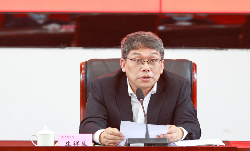 庄祥生强调,要牢牢把握“学思想、强党性、重实践、建新功”的总要求,坚持学思用贯通、知信行统一,在以学铸魂、以学增智、以学正风、以学促干方面取得实实在在的成效,切实做到凝心铸魂筑牢根本、锤炼品格强化忠诚、实干担当促进发展、践行宗旨为民造福、廉洁奉公树立新风,以实际行动坚定拥护“两个确立”、坚决做到“两个维护”。要在强化理论学习上求实效,把学深悟透党的创新理论作为总牵引,突出原原本本学、领导带头学、带动基层学、掌握方法学,带着更深感情、更强自觉,全面深入学习贯彻习近平新时代中国特色社会主义思想,切实做到往深里走、心里走。要在深入调查研究上见真章,按照党中央关于在全党大兴调查研究的工作方案和省委、校党委实施方案,逐条对标、逐项落实步骤要求,坚持问题导向、改进调研方式、用好调研成果,切实做到察实情、出实招、求实效。要紧紧围绕贯彻落实党的二十大作出的各项战略部署,进一步贯彻落实习近平总书记关于教育的重要论述和对福建工作的重要讲话重要指示批示精神,深学争优、敢为争先、实干争效,切实做到重实践、讲实干、出实绩,以推动高质量发展、提高师生幸福感安全感获得感的新成效检验主题教育成果。要在抓好检视整改上下功夫,坚持边学习、边对照、边检视、边整改,把问题整改贯穿主题教育始终,注重分类整改与集中整治相结合,强化纵向联动、横向协同、集中攻坚,切实做到有广度、有深度、有精度。要在推动建章立制上抓落实,坚持“当下改”与“长久立”相结合,建立巩固深化主题教育成果的长效机制,健全学习贯彻党的创新理论的制度机制,确保常态长效,切实做到经常抓、深入抓、持久抓。