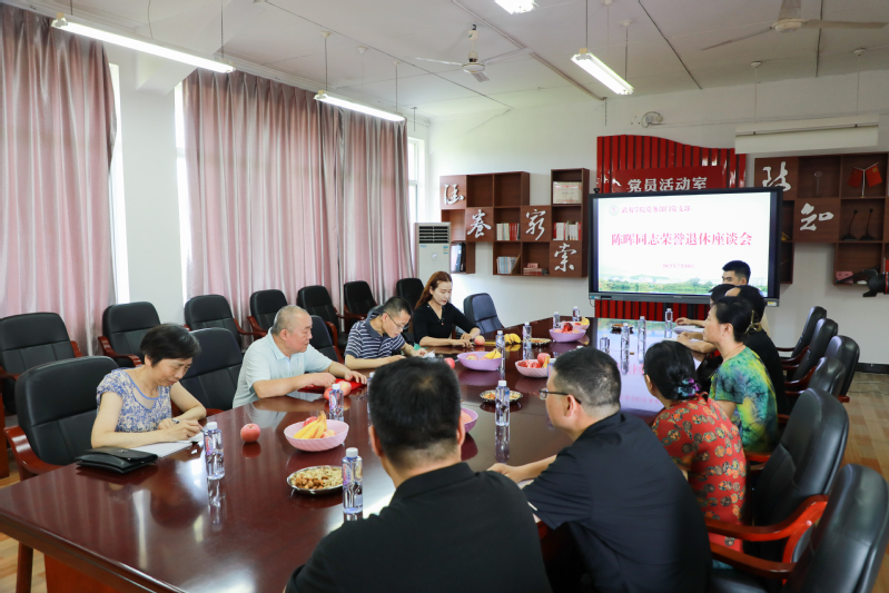 7月10日,党务部门为校工会办公室(校务公开办)主任陈晖同志举行荣誉退休座谈会。