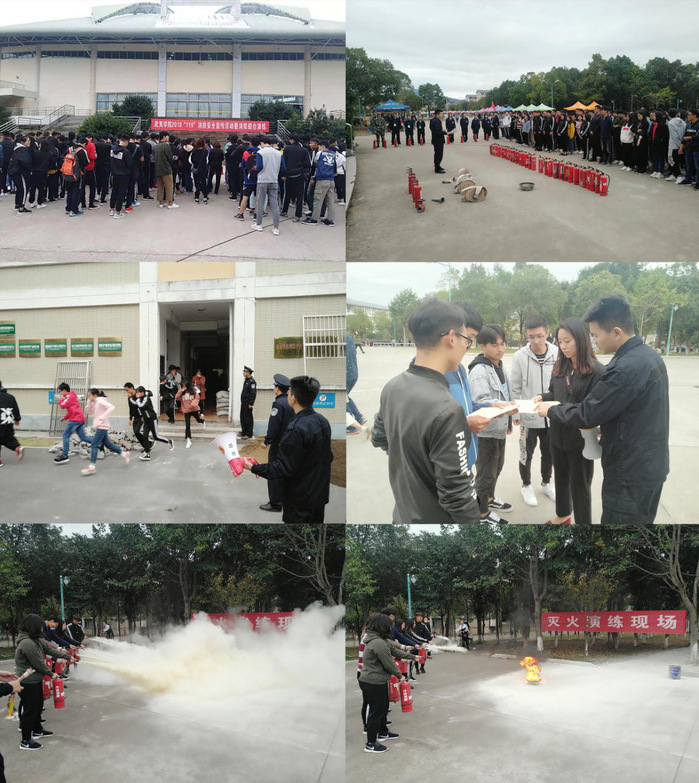 1月8日,我校举办了以“全民参与,防治火灾”为主题的“119消防宣传日”活动。当天下午15:00时在校保卫处和学院路派出所的指导下,生态与资源工程学院200余名师生和义务消防员在瑞樟9教学楼开展了应急疏散逃生演练。而后在体育馆外广场开展了消防法律法规宣传并发放了消防知识宣传单页,在活动现场组织师生们进行油盆灭火、灭火毯灭火、水枪灭火等实践操作。