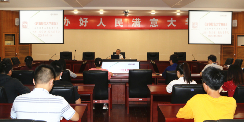 10月14日下午,校纪委陈宗荣书记在圆形会议室,以“补上全面小康‘三农’短板”为题,为毕业班学生干部上形势与政策课。 陈书记从农业农村展新貌说起,引用大量鲜活实例,为学生讲述了改革开放以来,国家持续加大对“三农”的投入力度,在粮食生产、消除贫困、现代农业、政策体系、乡村振兴等方面取得巨大成就,并围绕农村基层设施、供水保障、人居环境、教育质量、医疗卫生服务、社会保障、公共文化服务、生态环境等方面对如何对标对表补上“三农”短板、决战决胜攻坚战、全面建成小康社会向同学们进行了深入阐释和讲解。 课上,陈书记指出,人才振兴是乡村振兴的关键所在,新时代农业农村发展需要大量的人才,大学生到基层就业大有可为。他结合自己的成长和工作经历,积极引导和鼓励毕业生到基层就业,努力把个人理想与社会需求和国家发展紧密结合起来,用所学的专业与能力为社会服务。同学们认真听讲,深受教育。