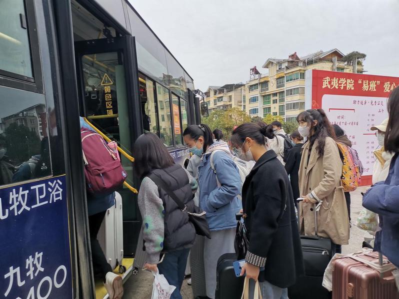 寒假来临,为方便学生顺利有序离校,落实落深落细党史学习教育“我为师生办实事”实践项目,减少疫情期间学生与外界的接触,保障学生安全,武夷学院学生工作部于2022年1月7日-8日推出武夷学院“易班”爱心公交服务。 活动前期,学生工作部提前做好大学生返乡乘车情况的摸底调研工作,确定集中返程的时间、人数,合理规划发车时间,与武夷山市公交公司做好对接,开设了从学校顺城广场到武夷山北站的直达专线,全程不经停,学生可以免费搭乘。 窗体顶端 1月7日7:30分,第一辆爱心公交准时抵达顺城广场,车辆全车消毒、驾驶员上岗前体温检测正常并且全程佩戴口罩,充分做好出发前的防疫准备。候车点,还安排了学生志愿者在现场维持乘车秩序、协助同学们搬运行李。8:00,公交准时出发,同学们一路欢声笑语,脸上洋溢着愉快的笑容,大家纷纷表示“在学校就能坐直达车感觉真好,避免了到校外的不便与拥堵,感觉很幸福”。 此次,武夷学院“易班”爱心公交,为学生提供校园与高铁站点对点无缝对接服务和一站式直达服务,解决了同学们放假离校高峰期乘车困难的问题,避免了搭车、转车时与外界的频繁接触,省时省力,安全快捷地将同学们送上回家的旅途。