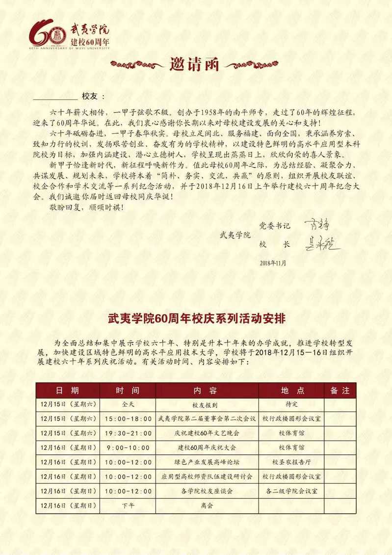 武夷学院将于12月15日—16日组织开展建校六十年系列庆祝活动。