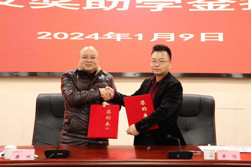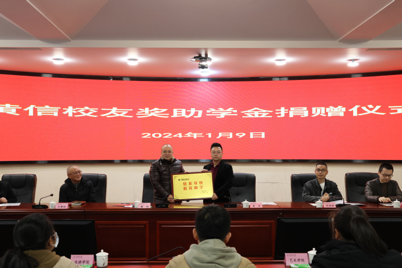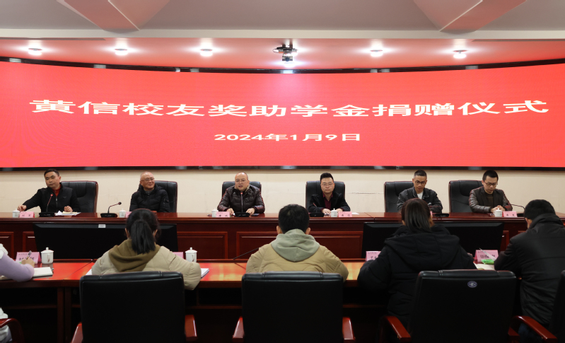 1月9日,我校在圆形会议室举行黄信校友奖助学金捐赠仪式。校党委委员、副校长廖斌出席并致辞。