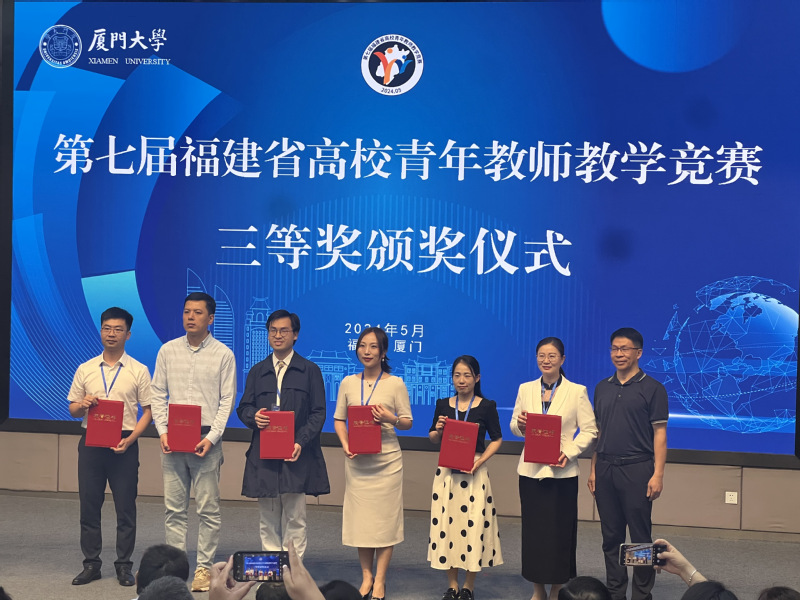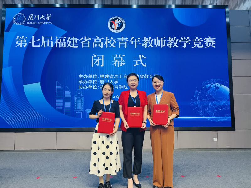 5月17日至19日,由省总工会、省教育厅联合主办,厦门大学承办,福建教育学院协办的第七届福建省高校青年教师教学竞赛在厦门大学成功举办。我校选送参赛的3位教师全部获奖,数学与计算机学院江玲老师、生态与资源工程学院胡永乐老师和马克思主义学院郭蕾老师分别获工科组、理科组、思政组三等奖。