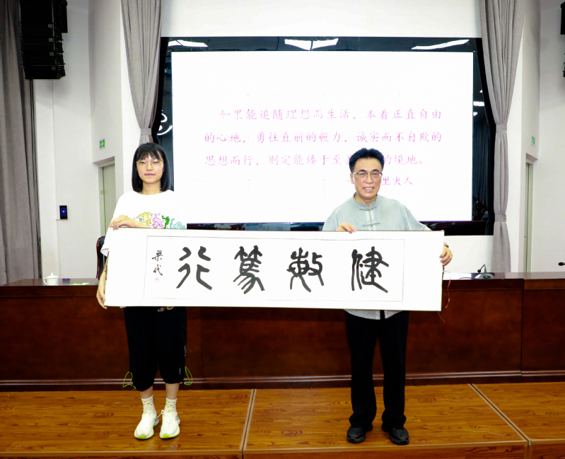 为展示校友风采、讲述校友奋斗和成功故事,激励我校学子锐意进取、担当有为。6月26日,我校邀请1989届校友、北京国创书院院长、中国国家画院研究员、中国书法家协会会员梁代为学生作专题讲座。校党委委员、副校长廖斌出席并向梁代先生颁发“武夷学院校友会荣誉会员”证书。200余名学生聆听讲座。