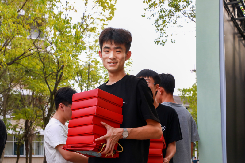 为了让学生深切感受节日氛围,送上学校大家庭的关怀和温暖,在中秋、国庆“双节”来临之际,9月29日,我校为全体在校生发放定制月饼,校领导庄祥生、吴承祯、杨昇、廖斌、郑细鸣、董青松参加发放仪式。