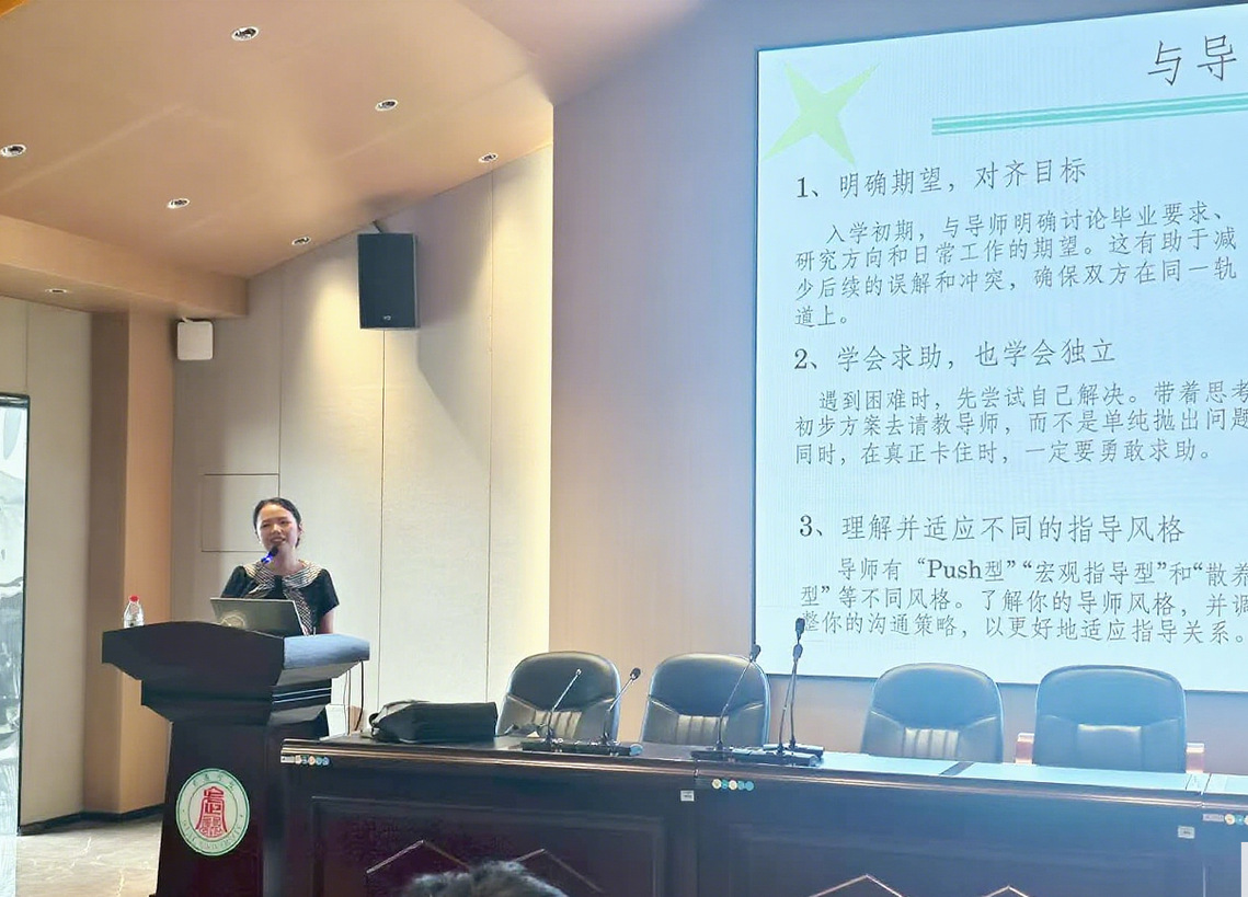 4日上午,入学教育以文化浸润与心理引导拉开序幕。在朱子书院二楼会议室,林孝斌老师以“朱子与朱子学”为题,深入浅出地介绍了朱子、朱子学的开端和发展、朱子学的现代价值,引导新生从传统文化中汲取治学与修身的智慧。随后,童宁老师围绕“从‘心’出发,卓越启航”主题,结合研究生阶段常见的心理适应问题,通过案例分析与互动问答,为新生提供了情绪管理、压力调适及人际关系处理的实用方法,助力其构建健康心理状态。