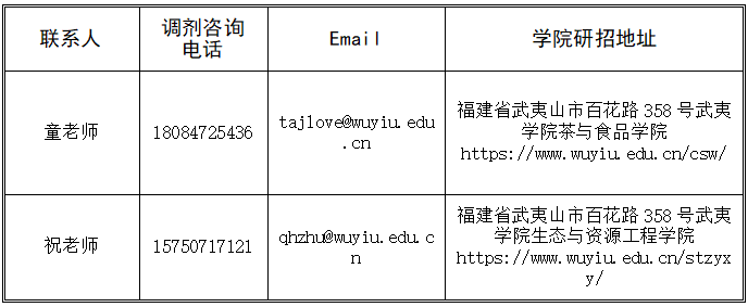 (二)武夷学院各二级招生学院咨询及申诉联系方式