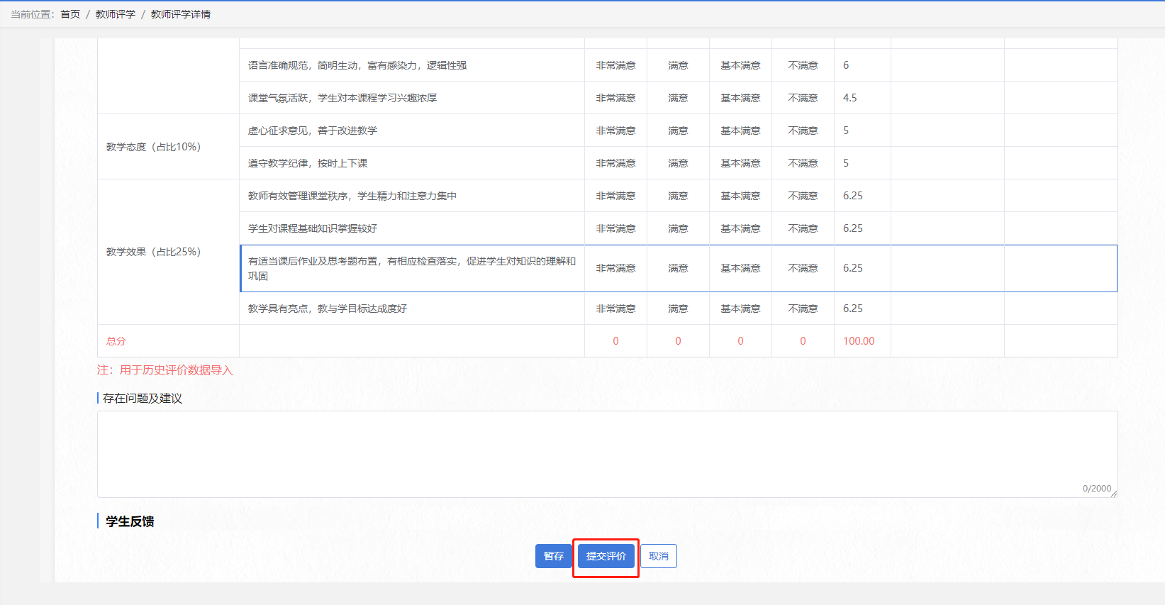 步骤三:根据指标进行评价,完成后点击【提交评价】