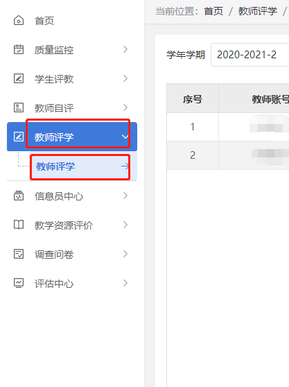 步骤一:教师登录,点击【教师评学】-【教师评学】