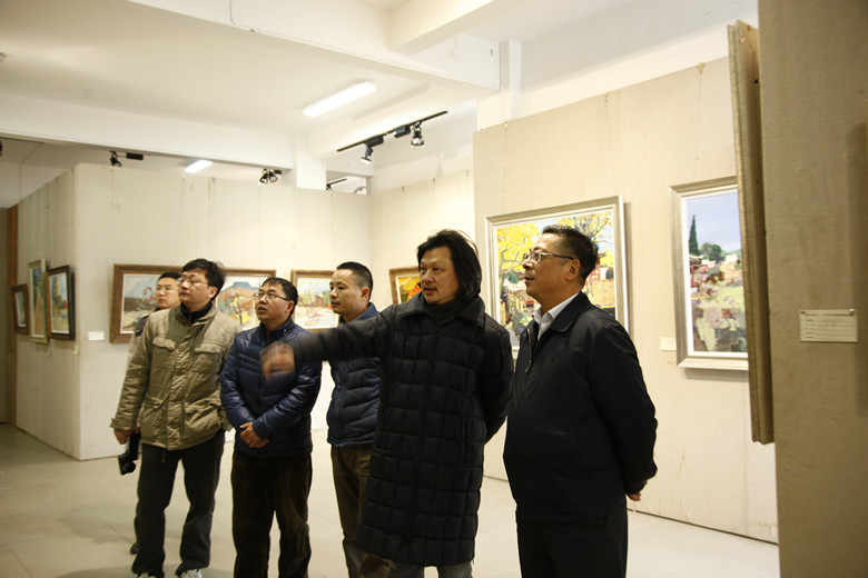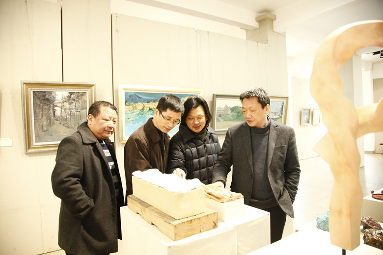 1月11日上午,校党委书记肖铮、校长吴承帧、党委副书记姚进生、副校长杨昇一行在艺术学院院长陈铎等人陪同下参观指导了“碧水丹青—艺术学院迎新教师作品展”。