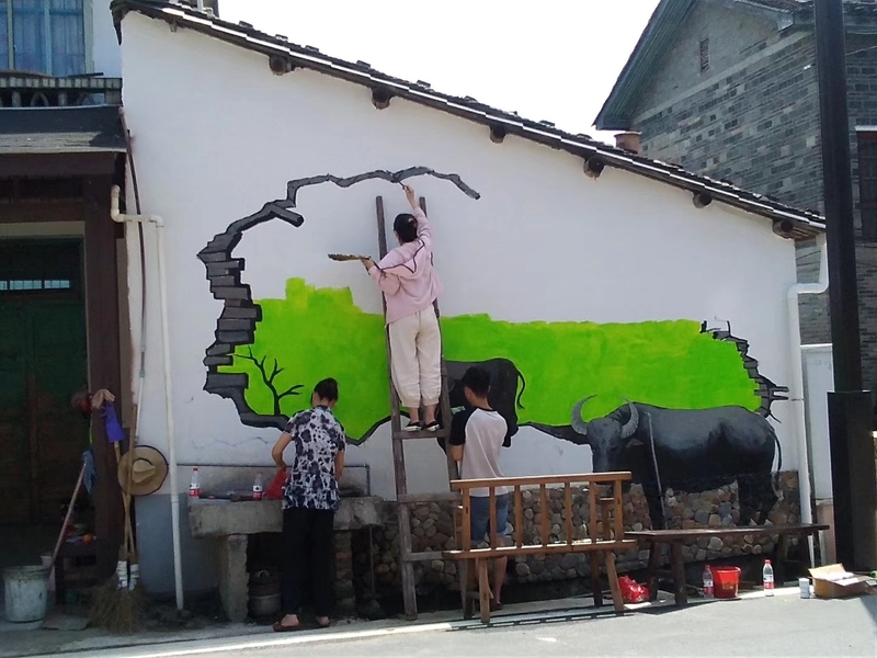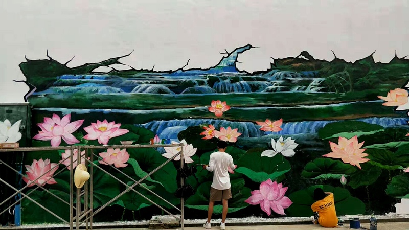 此次墙绘作为五夫镇新农村建设的重要内容,以荷花、瓜果蔬菜等五夫当地特产为创作题材,并在设计创中加入了3D绘画效果,使得墙绘作品更具有艺术性和观赏性。为五夫镇开展新农村建设,美化乡村环境、创造宜居乡村起到了积极的促进作用,提高了整体乡村文化气息,助力乡村振兴。