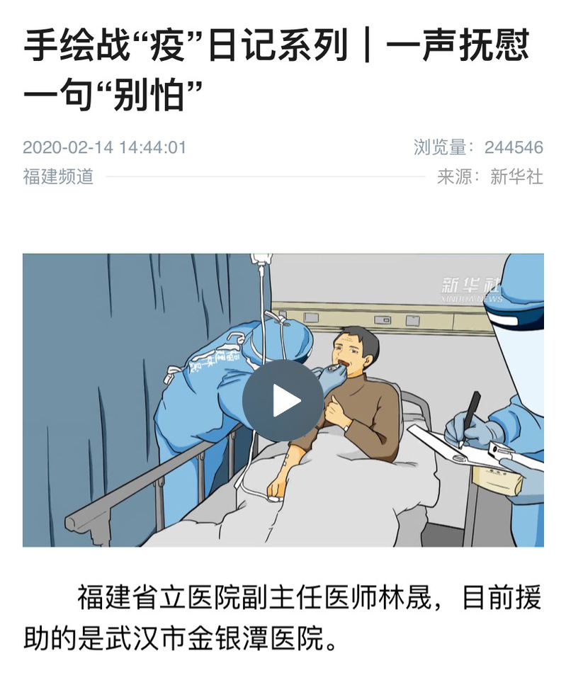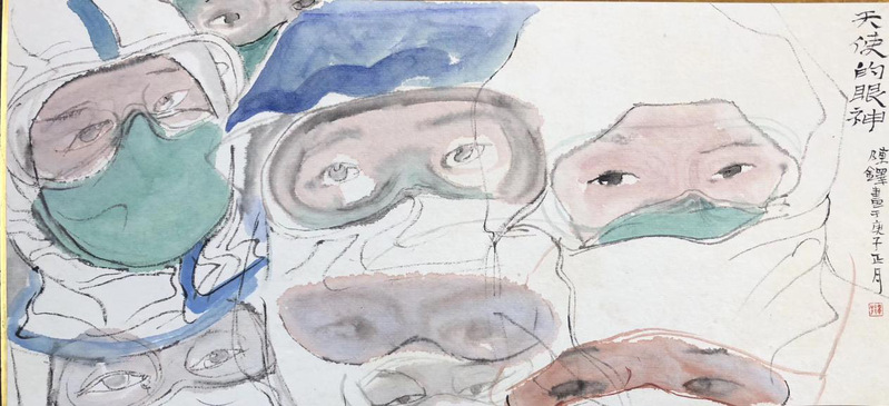 武汉疫情牵动全国人民的心,各地医护工作者齐聚武汉,共同对抗疫情。在习近平总书记亲自决策、亲自部署下,中国共产党领导中国人民及时采取有效措施应对疫情取得阶段性成效。在坚决打赢疫情防控的人民战争总体战阻击战中涌现出无数的英雄事迹感动着全世界的人民。艺术学院师生在学校党委正确领导下、在艺术学院党委书记、院长陈铎教授带领下,虽然不能像医护工作者一样投奔抗疫一线,但他们或以手中画笔讴歌、或以志愿者参与地方协助防疫……,以自己的实际行动积极投入到艺术战“疫”中来。2月14日,由新华社发布了一则关于福建医疗队前线医生的动画视频《手绘战“疫”日记系列|一声抚慰一句“别怕”》 后,立即引起了全国人民的广泛关注。为此,新华社特致电学校表示感谢并进行嘉奖。该视频采用动画的形式再现了福建医疗队驰援武汉的医师林晟的战“疫”日记,生动感人。该动画作品是由黄子延老师、胡杨梓老师和2016级动画专业的刘珊珊、卢琳蓉同学共同创作完成。2月24日陈铎教授国画《天使的眼神》系列作品在澎湃新闻中“抗疫—英雄赞歌”专栏中展出。2017级视传班黄斌妮、2018环艺班吴旭泽等同学在家乡主动参与地方防疫工作。另外其他相关教师的艺术作品也都出现在不同的抗疫微展上……。用作品传递正能量,以热血助理战“疫”行动的艺术学院师生,不仅在此次战“疫”中为学校赢得的美誉度和知名度,更是艺术学院师生“不忘初心、牢记使命”主题教育成果又一次集中展现,诠释了艺术学院师生“坚定理想信念,勇于使命担当”时代精神.