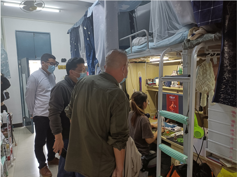3月21日下午,艺术学院党委书记甘志斗带领全体领导班子成员走访学生宿舍,了解在校生、返校毕业生学习情况,以及疫情防控落实情况。