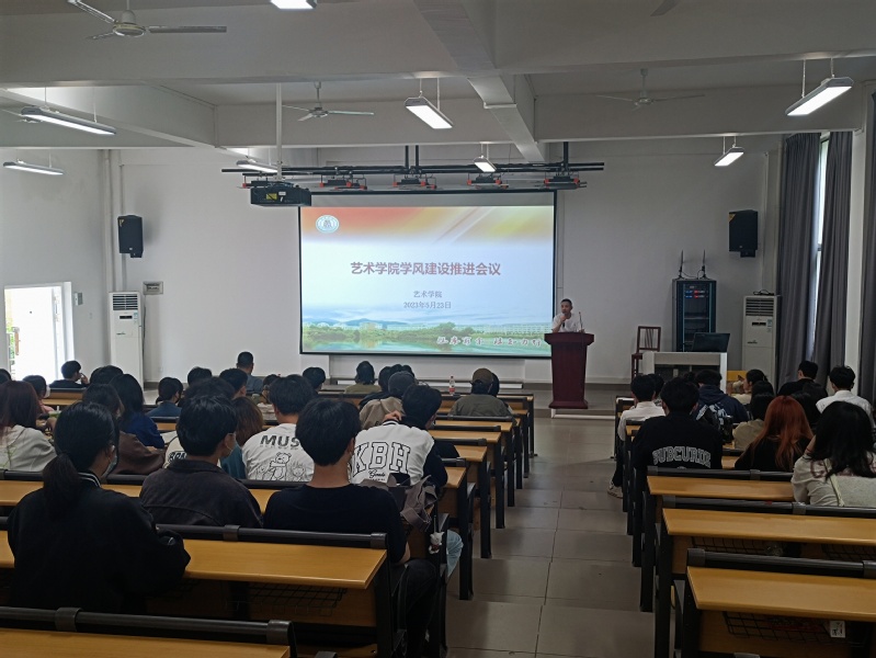 为进一步推进主题教育落地落实,深入开展为师生办实事,加强艺术学院学风建设,5月23日,艺术学院在院报告厅召开学风建设推进会。出席本次会议的有院党委书记甘志斗、副书记李锐军、转型办主任蒋海岭、学工科副科长俞丽清、全体辅导员、2023届考研录取同学、学习标兵、第六届速写大赛获奖者以及学生代表共120余人,本次会议由李锐军副书记主持。