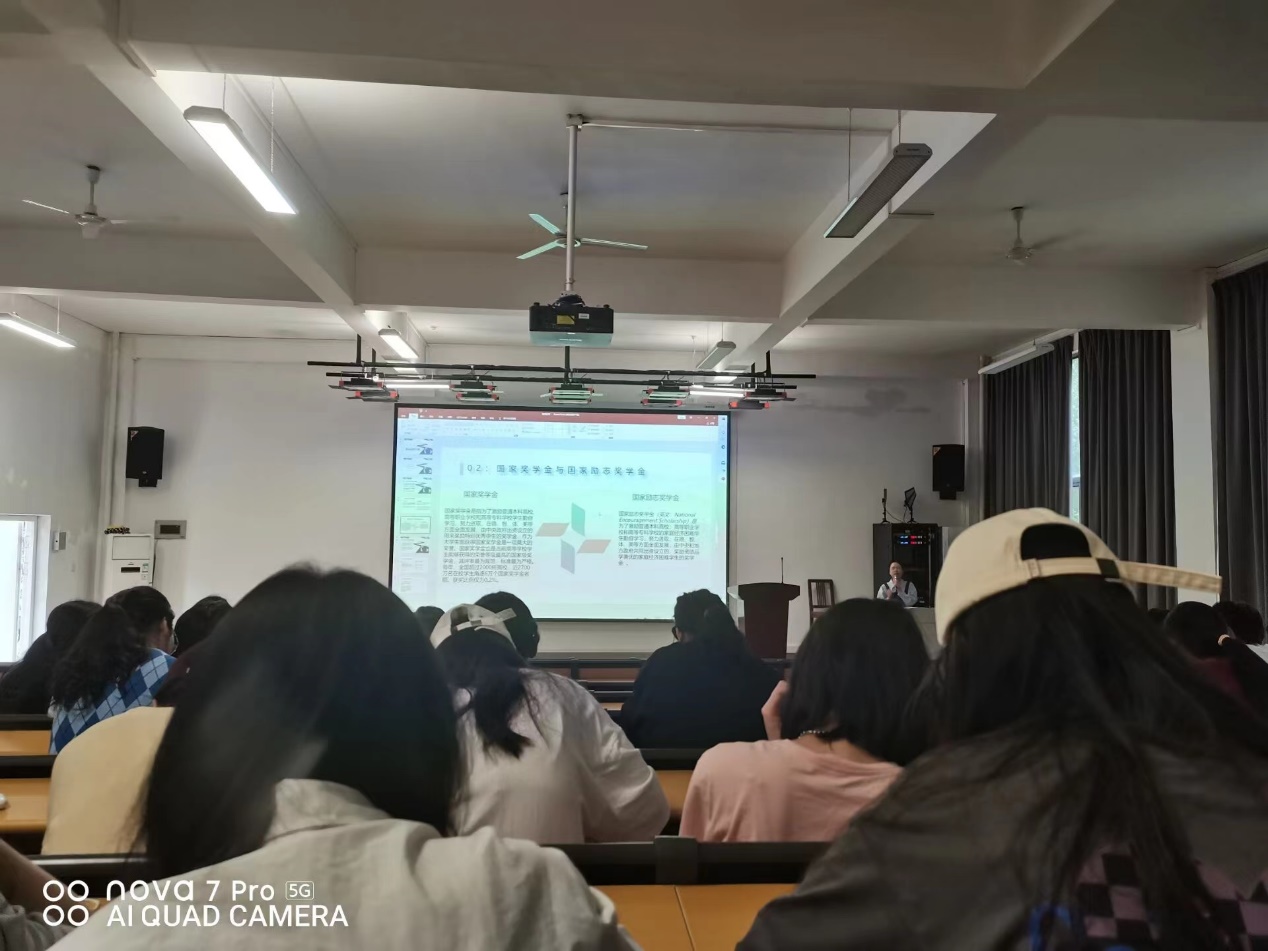 此外,童宁老师还就此主题讲座的目的、背景和要求进行简单介绍。从资助范围,资助标准,申请条件和时间等方面详细讲解了高等学校学生资助政策,并系统地讲述了生源地信用助学贷款和还款流程以及注意事项。之后,向学子们说明国家奖学金和国家励志奖学金的申请标准、评审及发放相关程序、国家与学校的各类资助政策等。最后,部分获得资助的同学上台与大家分享自己的心得感悟,同时,就同学们提出的相关疑问进行了系统详细的解答。
