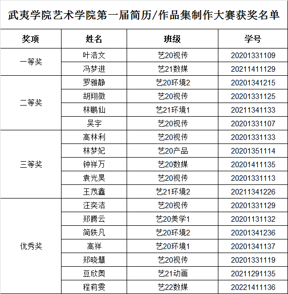 自活动开展以来,同学们特别是2024届毕业班同学积极参与,共征集到投稿简历/作品集共180余份,经过评选最终确定一等奖2名、二等奖4名,三等奖5名,优秀奖7名。