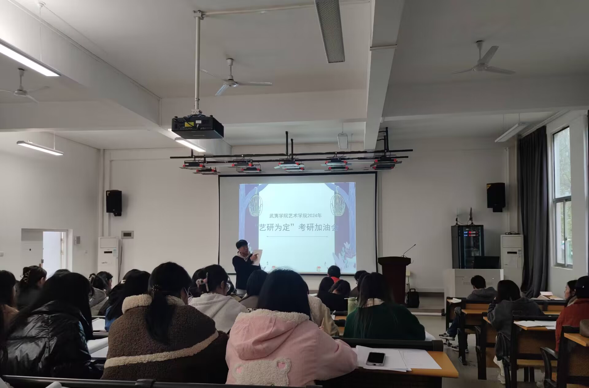 为了给我院即将参加2024年全国硕士研究生招生考试的同学们加油,鼓舞他们的考研斗志,缓解他们的考前紧张情绪,增加他们的信心,使他们感受到学院的温暖,艺术学院于12月13日下午在屏山10D-101举办了“艺研为定”考研加油会。