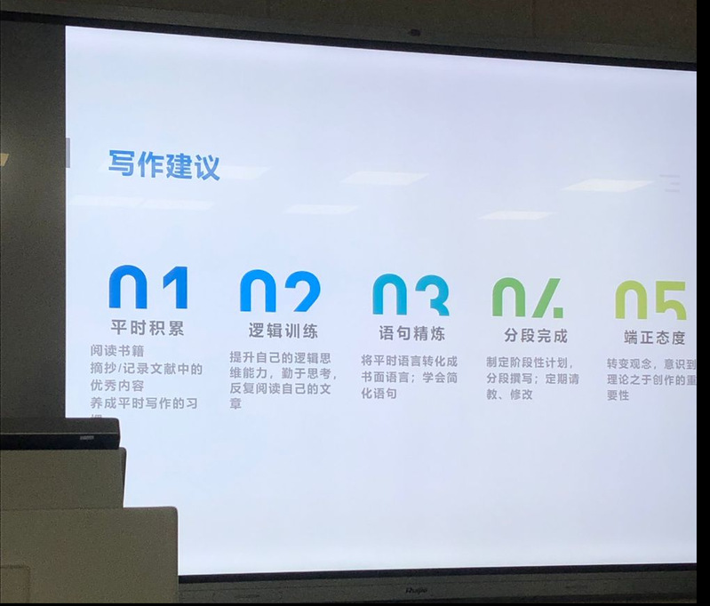 讲座分三个部分:1、成为更优秀的自己;2、毕业报告书撰写撰写要求;3、写作建议。王恒战老师在“如何成为更优秀的自己”部分,建议学生转变观念、提升文化内涵、提升创作能力、提升写作能力;第二部分王老师着重介绍了报告书的题目、摘要、关键词、正文、谢辞的撰写逻辑、以及参考文献的引用与标注规范;最后王老师殷切希望各位同学注重平时积累、加强报告书段落及语句撰写的逻辑训练、端正态度,以确保毕业生们报告书的高质量完成。