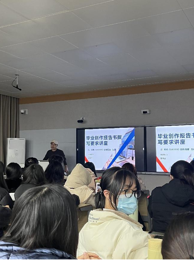 2024年1月4日晚上7点,艺术学院美术学系系主任王恒战老师在智慧教室面向美术学专业的学生开设了一堂内容为“毕业创作报告书撰写要求”的讲座,帮助2024届美术学专业解决毕业生创作报告书的撰写方法与格式规范等问题。前来聆听讲座的有艺术学院2021级、2020级美术学专业学生、海峡成功学院2021级、2020级美术学专业学生,以及其他有意向聆听的学生及专业教师。