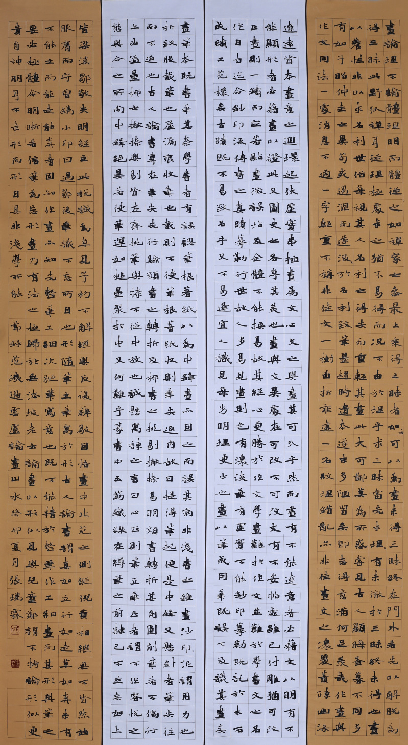 张瑞霖同学自幼受父母启发学书,在曾祖父张存诚“晚红山馆”书画斋饱受艺术浸染。求学期间,在专业老师们的鼓励与指导下,利用课余时间精研书法艺术,尤喜魏碑之天真烂漫、意态奇异,旁涉古隶、行草,融隶之浑厚古拙、行草之灵动活泼,由书感万物。更可贵的是,他在学书之时,还积极带动身边的同学一起研习。据悉,此次入选国展,张瑞霖同学已经达到加入中国书法家协会条件。