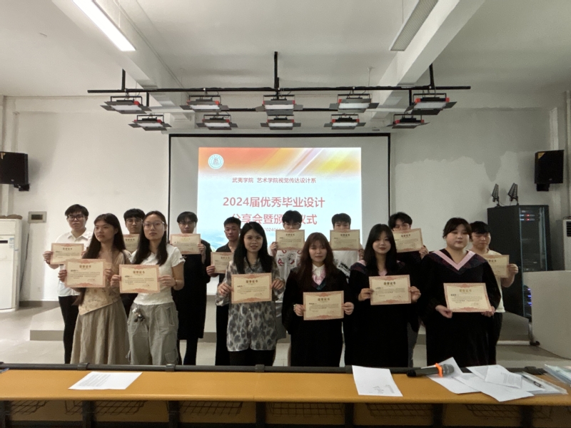 2024年6月13日上午,视觉传达设计设计系开展开展2024届优秀毕业设计分享暨优秀毕业设计颁奖会,本次视传专业共有16件作品留校(名单如下),他们的作品涵盖了视觉传达专业毕业设计选题的各个方向。经过2021级大三同学们的票选,最后选定以下8位同学进行毕业设计分享,他们是胡翔微、林馨缘、林燕琴、叶浩文、陈怀楠、姚子杰、吴梦婷、黄桐海,所分享的设计方向有插画设计、IP设计、品牌设计、茶包装设计、书籍装帧设计、红色文创设计、社会议题等方向,为在校生奉献了一场精彩的分享,最后还进行了颁奖典礼。