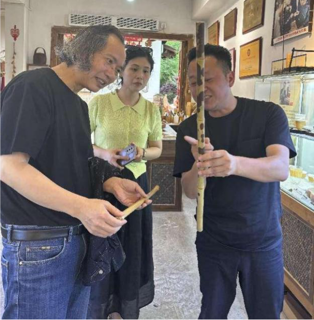 5月23日下午,艺术学院甘志斗书记带领视觉传达设计系刘水清、蔡洁、魏攀到武夷宫宋街为视传专业文创设计作品落地相关事宜进行市场调研,通过走访武夷山竹编馆——省级非物质传承人——谢宏星,了解到武夷山有近50种的竹资源,利用竹子和旅游文创相结合设计作品将有利于提升文创品的地域特性,也对凸显视觉传达设计专业的办学特色有提升。