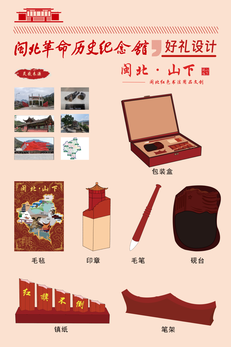 本次课程对接第二届闽北革命历史纪念馆首届红色文创产品设计大赛,在课程教学中,通过实地调研、考察,走访革命遗址,收集相关的红色知识及文创产品设计,同学们进行头脑风暴、创意发想、草图表现、设计制作,完成了纸上到实物制作的各个环节,同学们也真是体验到一个项目从想法到落地之间的层层关卡,也理解了设计不仅是要有好的想法更是要受到工艺、材料、费用等的限制,甚至布展环节也是考验学生综合能力的最后关卡,总之,最后圆满完成了课程目标,同学们都露出了满意的笑容。