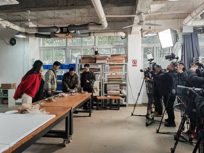 在拍摄间隙徐里先生及其团队参观艺术学院展厅、实验室、武夷艺术研究院等,对艺术学院所取得的成果给予肯定,希望艺术学院能够继续结合地方文化,让传统文化与现代艺术有机融合,走出“人无我有、人有我优”的差异化发展之路,凸显独具特色的办学方向。