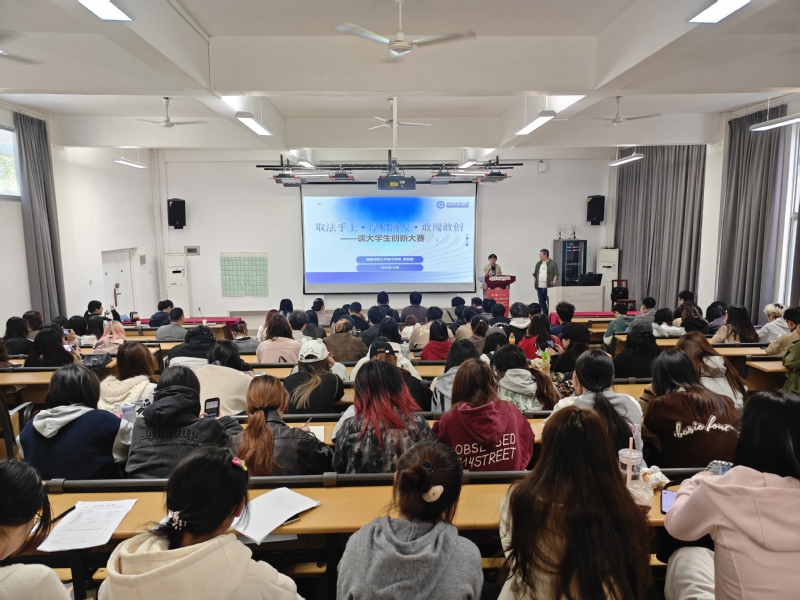 讲座现场,黄旭曦以其指导并获得2024年中国国际大学生创新大赛银奖的项目:“零零漆”——国家级非遗漆器文化的实践创新为引,针对国创赛关键环节展开讲解。首先指出大赛成功的两个核心逻辑——始于选对项目,成于育好项目。随后,在选题方面,建议同学们以“取法乎上”定方向,指出项目选择的六大黄金法则;在项目历程方面,要以“敢闯敢创”定项目;关于课题打磨,要厚积薄发,提醒同学们要注重项目材料的积累,注重数据支撑与逻辑梳理,提升项目的完整性、规范性与可行性。