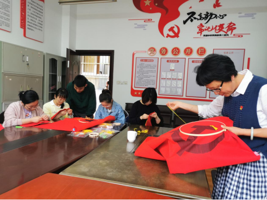 日前,武夷学院财务处党支部开展 “绣党旗、学党史、颂党恩”主题活动,组织全体党员、入党积极分子和青年团员精心绣制党旗和国旗。党员们手持绣绷和绣花针,认真地在红旗上绣起镰刀锤子和五角星图案,用最传统、最朴实的方式,表达对建党百年的诚挚热爱和深情祝福,彰显财务处全体党员同心向党、携手奋进新时代的精神面貌。