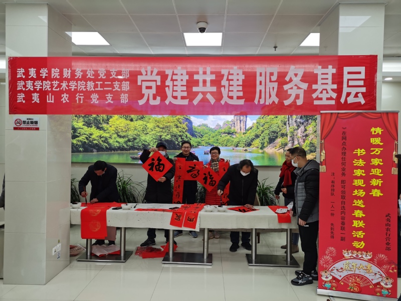 3.矢志为民服务,践行对党忠诚的价值坐标。服务师生, 助攻高校转型建设。作为高校基层党支部,财务处始终将服务师生作为宗旨,着力解决师生最关心最直接最关注的问题。想师生所想,有针对性地优化服务,提升财务服务质量和工作效能。持续深化“放管服”改革,简化财务报销手续和审批流程。积极探索“智慧财务”,大力推进财务信息化建设,推行网络报账、增强跨部门业务协同,优化财务综合服务平台、微信公众平台的功能,提供更加全面、便捷、贴心的信息服务。推出“只跑一次报销清单”小程序,师生可在小程序上查询不同类别报销所需材料及流程,了解经费审批规定等,一定程度上解决了师生报销过程中遇到的困难,获得师生的好评。服务基层,助力革命老区发展。积极响应乡村振兴战略,立足基层,服务地方。2017年在武夷山市政府有关领导的见证下,财务处党支部与“闽北红色首府”大安村党总支签署了校村共建协议,携手各大金融机构下基层开展助农惠农金融政策宣传,党员们利用自身专业知识,为大安村居民开展电商培训并多次回访指导,帮助当地建成农村淘宝服务站,拓宽农副产品销售渠道,增加个人收入。相关活动信息受到省教育厅网、中国网和海峡网的报道。2019年10月,大安村党总支向财务处党支部赠送2面锦旗,表达对支部三年来扶贫扶智的深深谢意。搭建平台,助益红色资源开发。闽北是福建革命的策源地之一,被誉为“红旗不倒”的地区。财务处党支部积极搭建红色资源共享平台,2019年,促成武夷学院思政课实践教学基地(省级)在“闽北红色首府”大安村落地。2021年,主动对接“中央苏区崇安县委驻地”黄墩村,就推动红色文旅产业发展、红色文化讲解宣传、红色旅游配套设施等多方面问题进行多次实地调研讨论,搭建高校服务地方的桥梁。多年来与当地金融系统党组织,共享高校思政教育优势,邀请马克思主义学院教授开展思政讲座。充分运用革命老区的红色资源,弘扬革命精神,传承红色基因,让广大师生、党员干部能更好地接受革命传统教育。笃行公益,助推核心价值传播。向外传递温度,奉献爱心,勇担社会责任。支部党员自发捐款购买爱心图书和文具为老区村儿童送去“六一”节日祝福,并定向资助两名留守贫困儿童完成学业,走访慰问建档立卡贫困户,助力山区教育和扶贫工作。每个新春前夕,支部都携手学校艺术学院的书法家,在各银行网点为武夷山市民免费书写春联。“马上就要过年了,能得到武夷学院甘志斗教授亲笔书写的春联,非常的喜庆。”市民张大爷拿过刚写好的春联乐得合不拢嘴,并小心翼翼地将春联展开晾干,喜悦之情溢于言表。在满室墨香中唤醒浓浓年味,寄托美好祝福,用实际行动弘扬优秀传统文化,丰富广大群众文化精神生活。此外,支部结合财务专业行业特点,积极开展税收普及、金融防诈、校园禁毒等宣传活动,为普法出智出力。