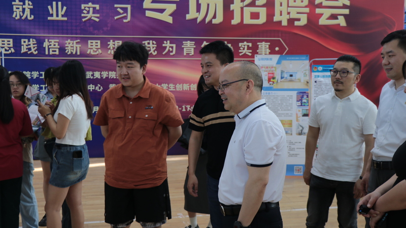 为贯彻落实全国全省高校毕业生等青年就业创业工作电视电话会议精神,将学习贯彻习近平新时代中国特色社会主义思想主题教育同做好高校毕业生就业创业工作紧密结合,5月18日,团学党支部举办“学思践悟新思想·我为青年办实事”武夷学院大学生创业联谊会校友企业就业实习专场招聘会。校党委委员、副校长廖斌到现场指导。