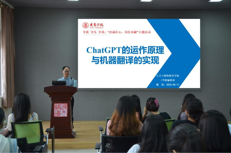 此外,魏琛同志还在逸夫讲坛开设“ChatGPT的运作原理与机器翻译的实现”专题讲座,从当代语言学研究的成就与大型语言模型之间的密切关系角度,就师生感兴趣的前沿话题作了分享和交流。
