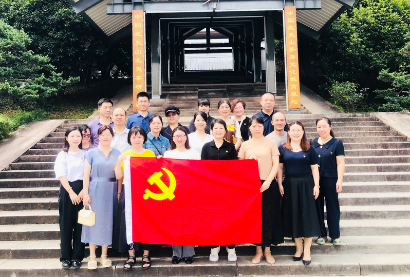 为深入开展学习贯彻习近平新时代中国特色社会主义思想主题教育,丰富主题党日形式,增强广大党员的廉俭意识。6月3日上午,图书馆党支部和人文与教师教育学院教工第七党支部开展联合主题党日活动,到武夷山茶廉文化教育基地——茶廉文化馆参观学习。图书馆党支部书记陈志宏、人文与教师教育学院院长李文斌、教工第七党支部书记谢建娘、及双方党支部党员代表参加活动。