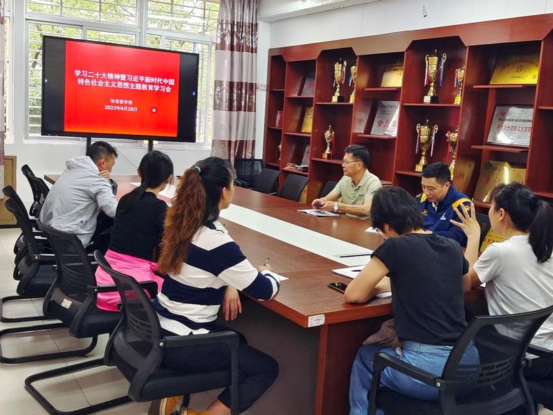 按照体育教学部党支部主题教育工作要求,扎实开展学习贯彻习近平新时代中国特色社会主义思想主题教育,4月18日下午,体育教学部党支部在体育部会议室召开学习贯彻党的二十大精神学习研讨会,全体党员参加会议,黄章权、林俊、罗青琴三位同志对学习党的二十大精神的体会分别作学习发言。