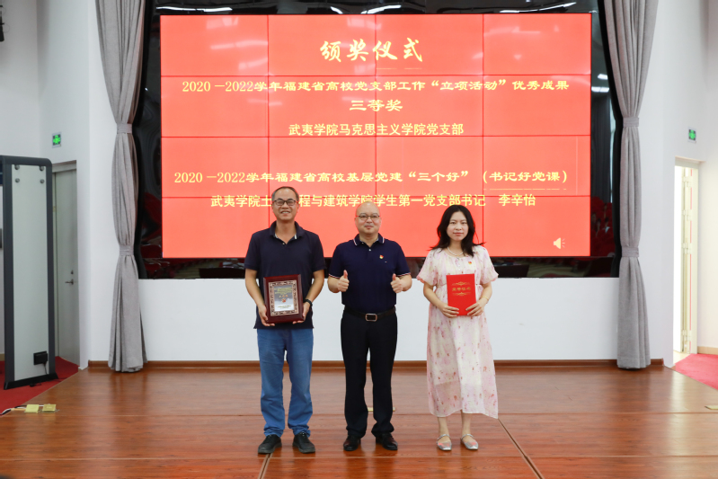 活动现场还为获得2020—2022学年福建省高校党支部工作“立项活动”优秀成果、福建省高校基层党建“三个好”的支部和个人进行颁奖。