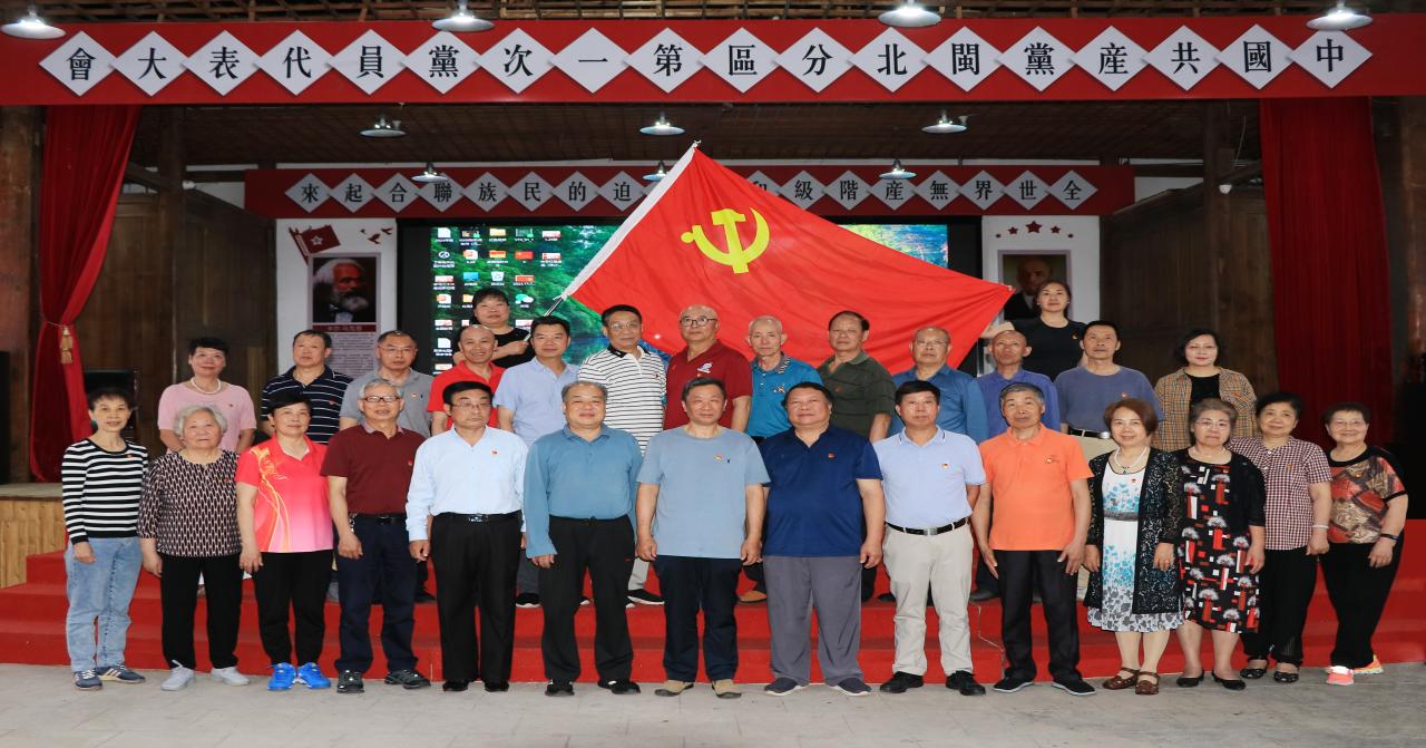 在闽北分区苏维埃政府红军礼堂,由武夷学院原党委书记何三保同志领誓,全体党员重温入党誓词。
