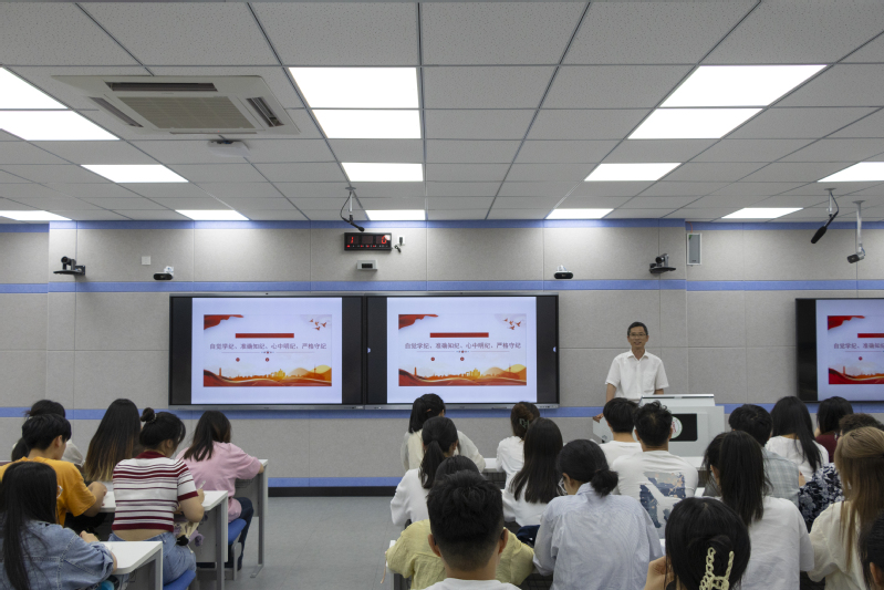 吴承祯强调,全校上下要把纪律学习作为必修课、常修课,有机融入教育教学、学术科研、学生管理等工作的各个方面、各个环节,引导广大师生党员把遵规守纪刻印在心,内化为“日用而不觉”的言行准则。要在“学纪”中明方向、强筋骨,真正领悟党纪的实质和内在要求,不断筑牢信仰之基、锤炼坚强党性,真正发挥先锋作用、站稳人民立场;要在“知纪”中保持敬畏之心、严守纪律红线,认真对照党章、遵守党纪,做政治明白人、做纪律的追随者,自觉营造崇尚廉洁的良好氛围;要在“明纪”中树好典型、当好标兵,把党的“六大纪律”要求内化为自己的精神追求,外化为自己的行为自觉,切实用党规党纪约束自身的一言一行;要在“守纪”中加强纪律约束和党纪修养,切实加强校风教风师风学风建设,努力营造风清气正的良好政治生态、学术生态和教书育人环境,凝聚推动一流应用型大学建设的强大动力。