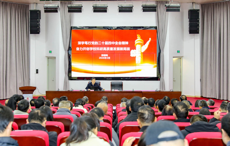 校党委委员、副校长郑细鸣以“深学笃行党的二十届四中全会精神奋力开创学校科研高质量发展新局面”为题,阐释全会赋予高校科研的时代使命,分析学校科研工作现状,提出学校科研高质量发展的重点任务。