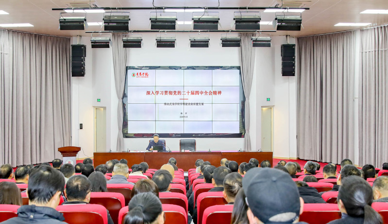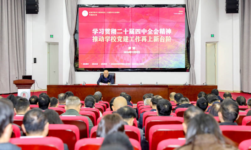 校党委委员、副校长廖斌以“学习贯彻党的二十届四中全会精神 推动学校党建工作再上新台阶”为题,围绕“对标看齐、对标自查、对标落实”三个维度分析学校党建工作,提出党建工作的提升路径。